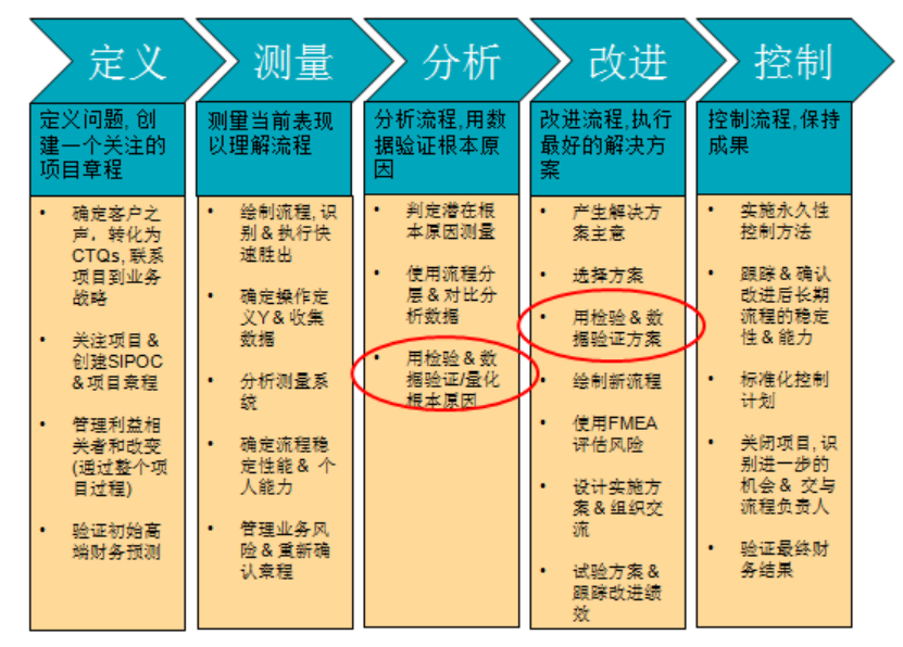 6西格玛并不是丰田体系的标准模块,但在追求完善品质的过程中,我们也会对公司进行6西格玛方法论的运用进行辅导。6西格玛主要包含以下模块:
